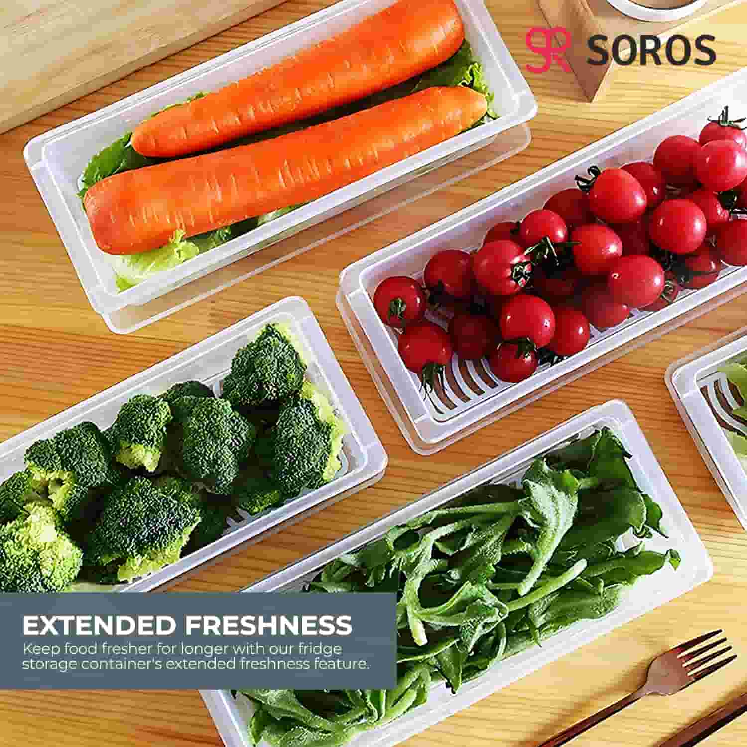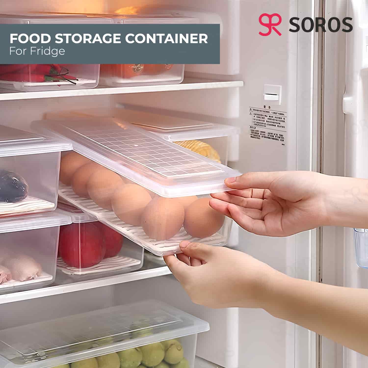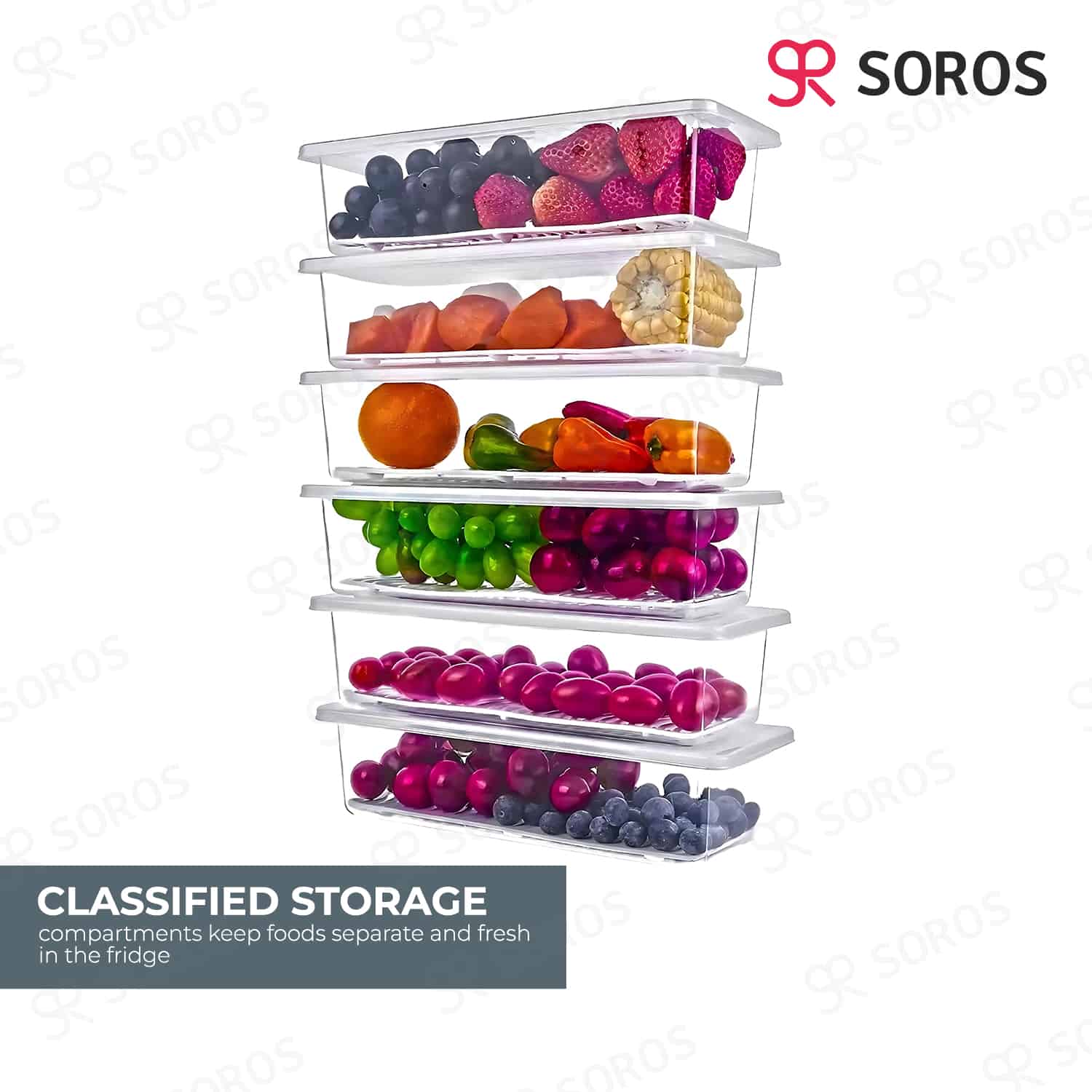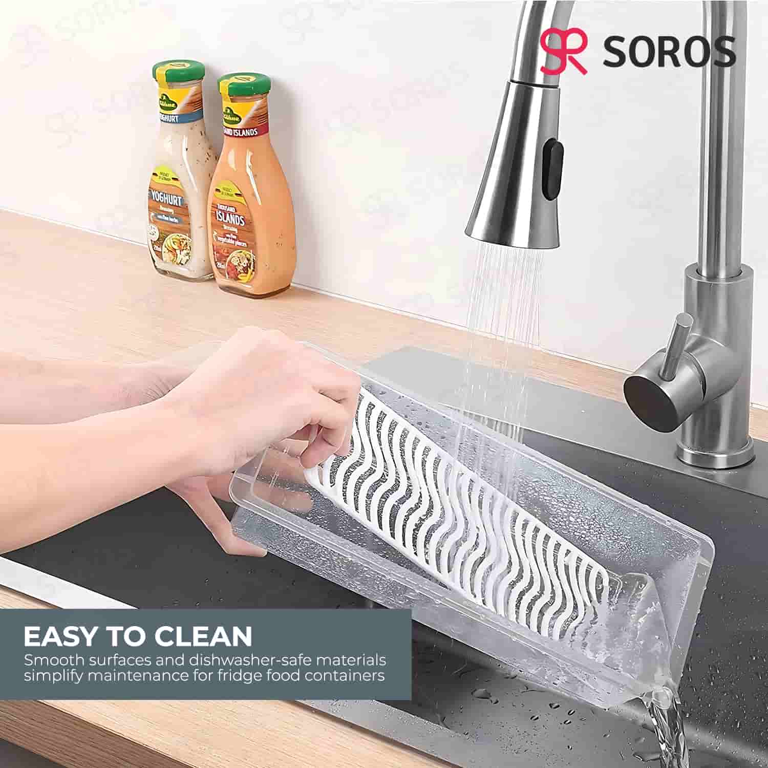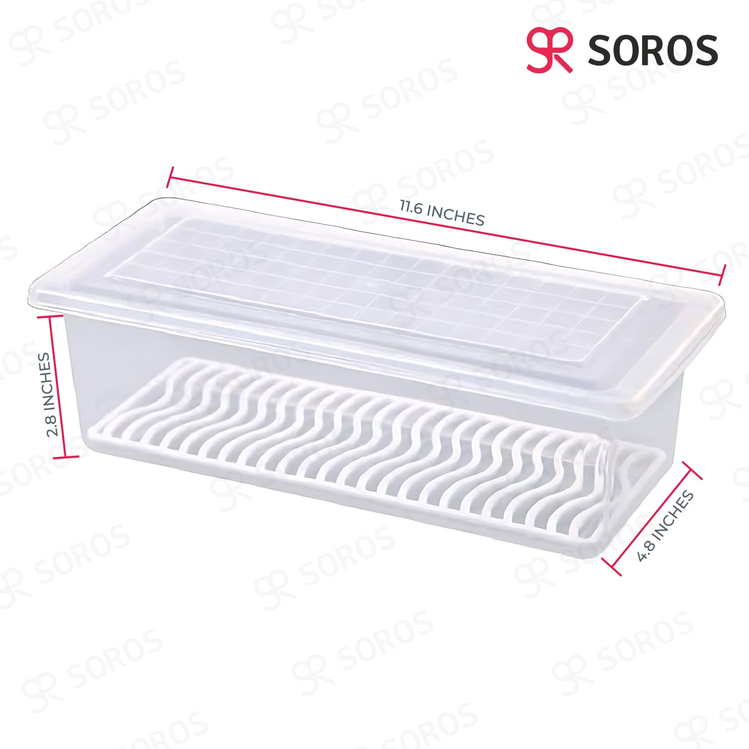 Soros multipurpose storage containers are perfect for storing various food items, keeping your fridge organized and odor-free. With a stackable design, they're ideal for maximizing fridge space and kitchen storage. Easy to clean and maintain, these containers drain moisture, prevent bacterial growth, and keep food fresh. Made from durable, food-grade plastic, they're long-lasting and versatile. The transparent design makes it easy to find what you need, while the elegant look enhances your kitchen's aesthetic. Soros containers fit perfectly in most refrigerators, freezers, and cupboards, ensuring efficient use of space.