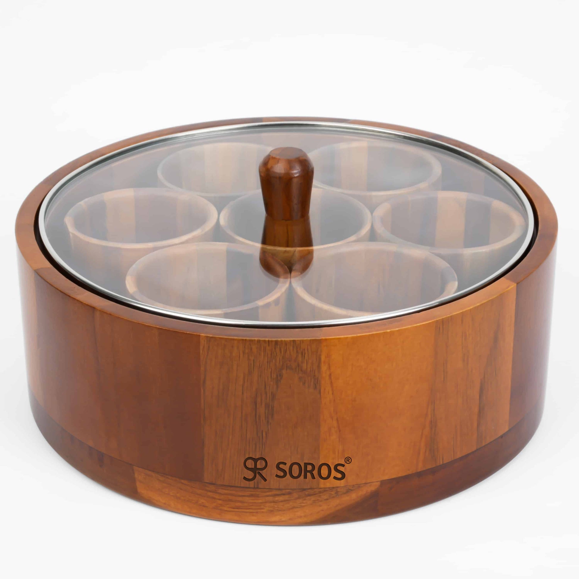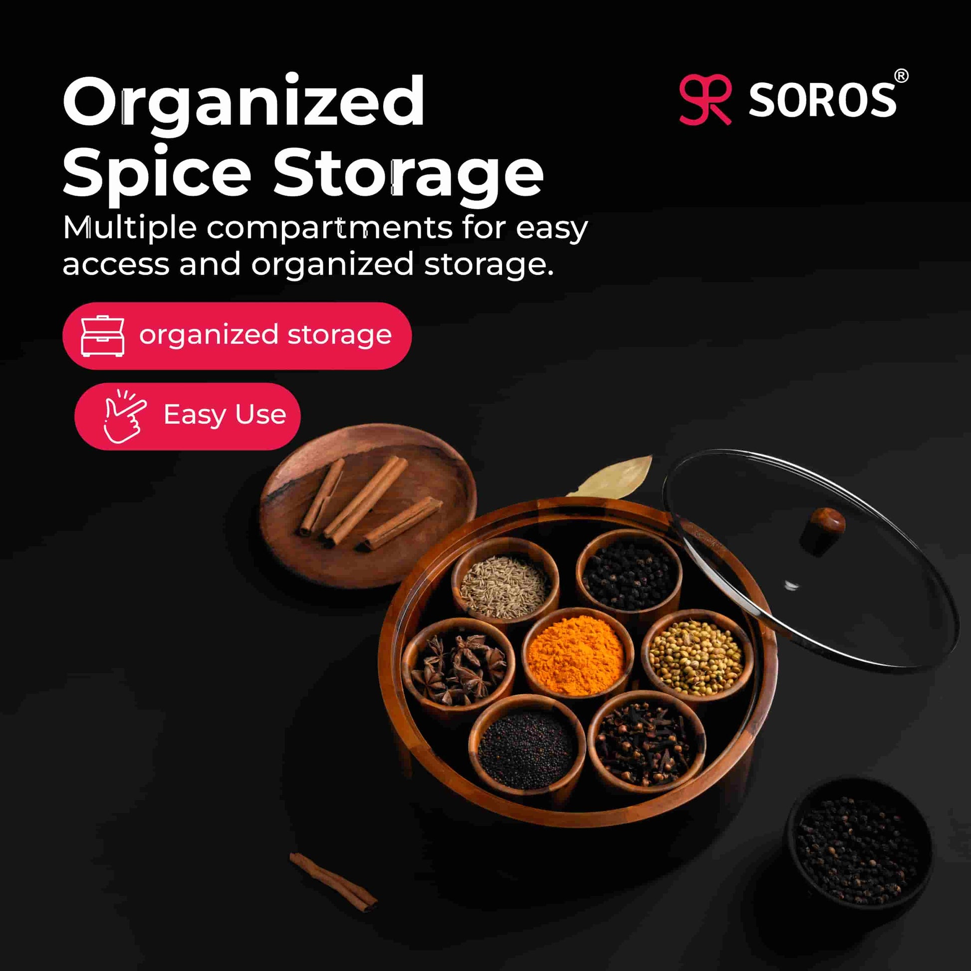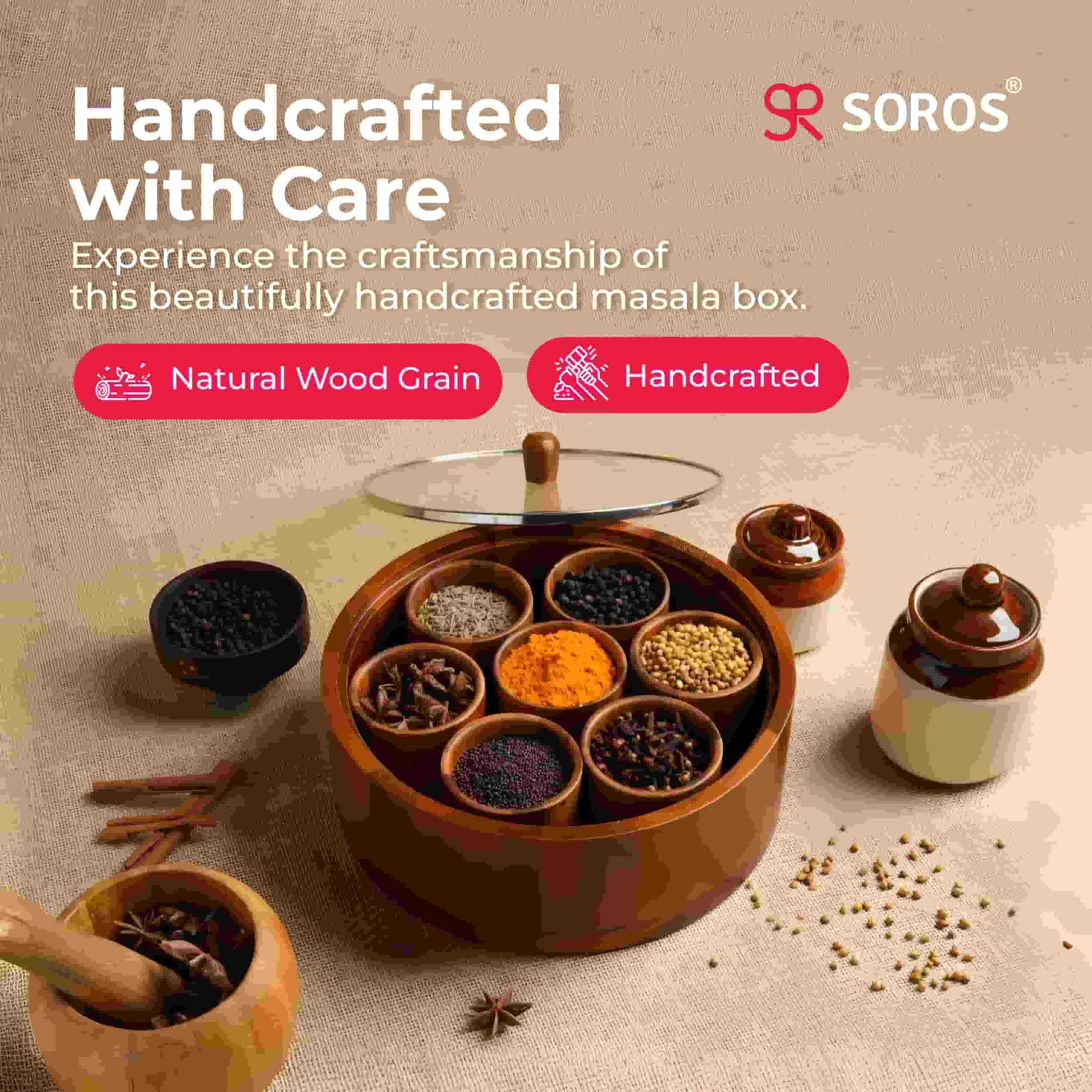 The SOROS Teak Wood Masala Box is a beautifully crafted spice storage container designed to add a touch of elegance to your kitchen. Made from high-quality teak wood, this masala box features multiple compartments to store your favorite spices and herbs. Its classic design and natural beauty complement any kitchen decor, while its durability ensures long-lasting use. Perfect for storing masalas, spices, or herbs, this box keeps your kitchen organized and your spices within easy reach. The teak wood finish adds a warm, rustic charm to your kitchen.