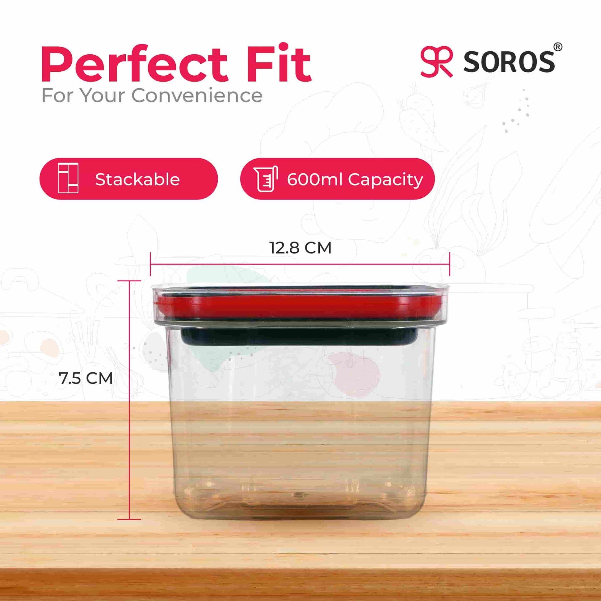 Soros Air Tight Kitchen Storage Container Combo 600ml.