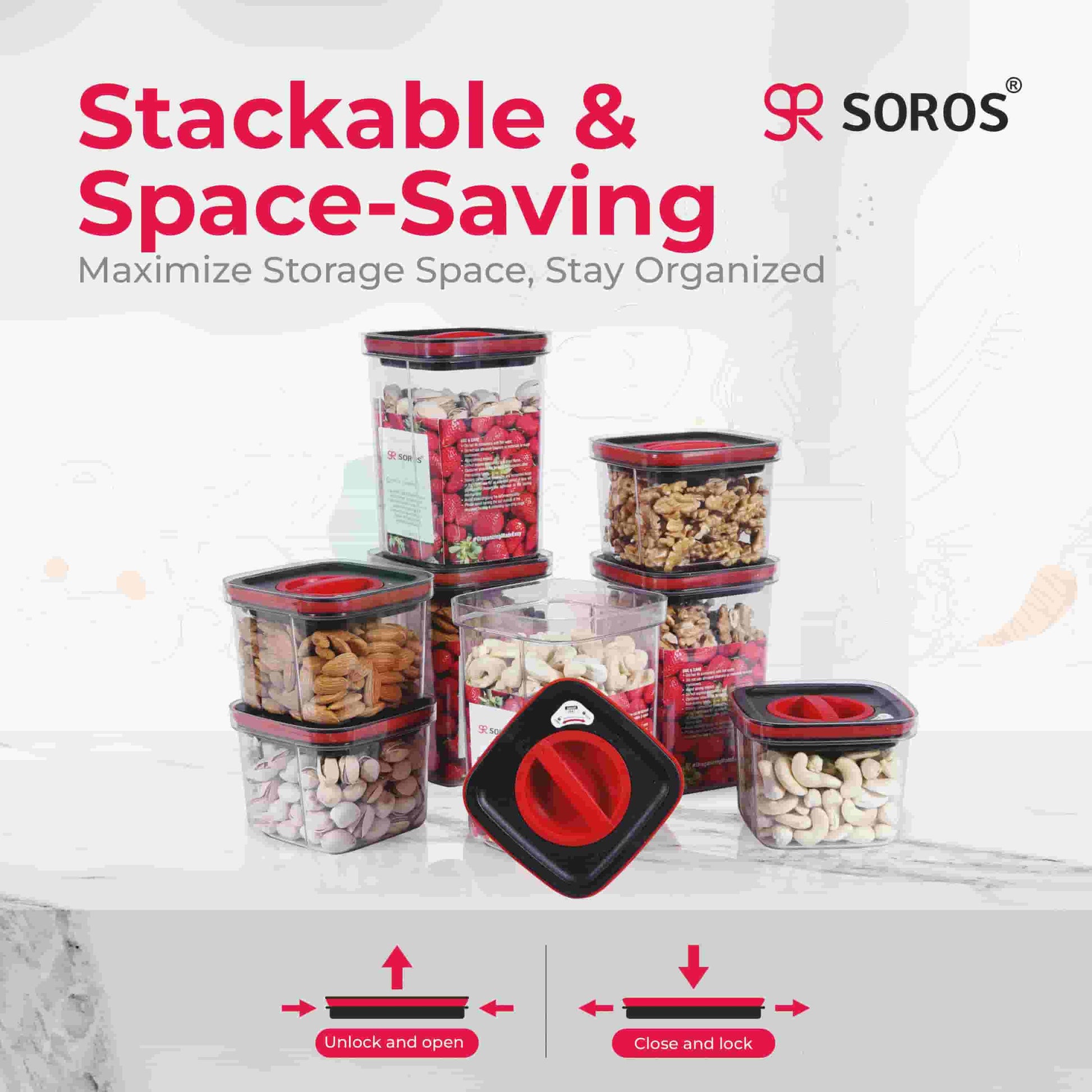 The Soros Container is designed for effortless food storage. Made from premium, BPA-free material, it's freezer-safe, dishwasher-safe, and recyclable. The airtight lid locks in flavor and aroma, preserving moisture and freshness. Odourless technology keeps food odors contained, while the wide opening lid and transparent body provide easy access and visibility. Durable, lightweight, and shatter-resistant, this container is perfect for storing dry and wet items. Available in various sizes and colors, it's ideal for organizing your kitchen and keeping food fresh for an extended period. Soros quality ensures long-lasting performance and convenience.