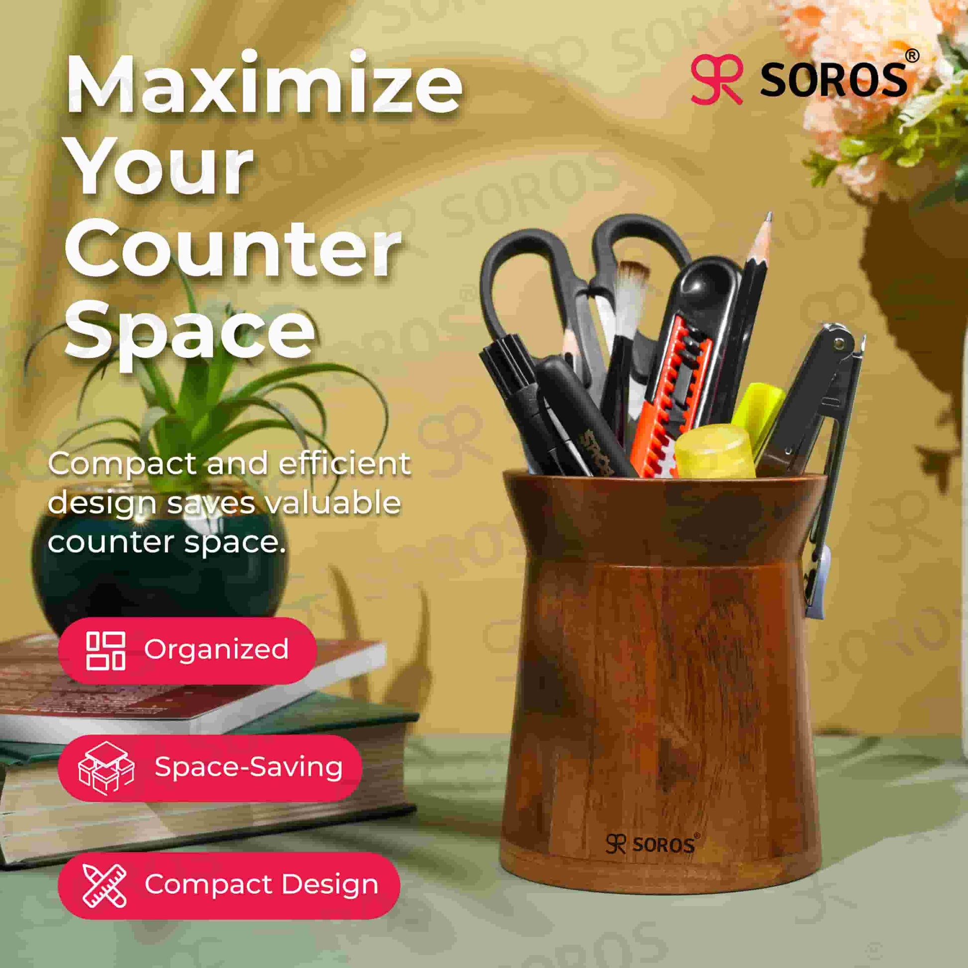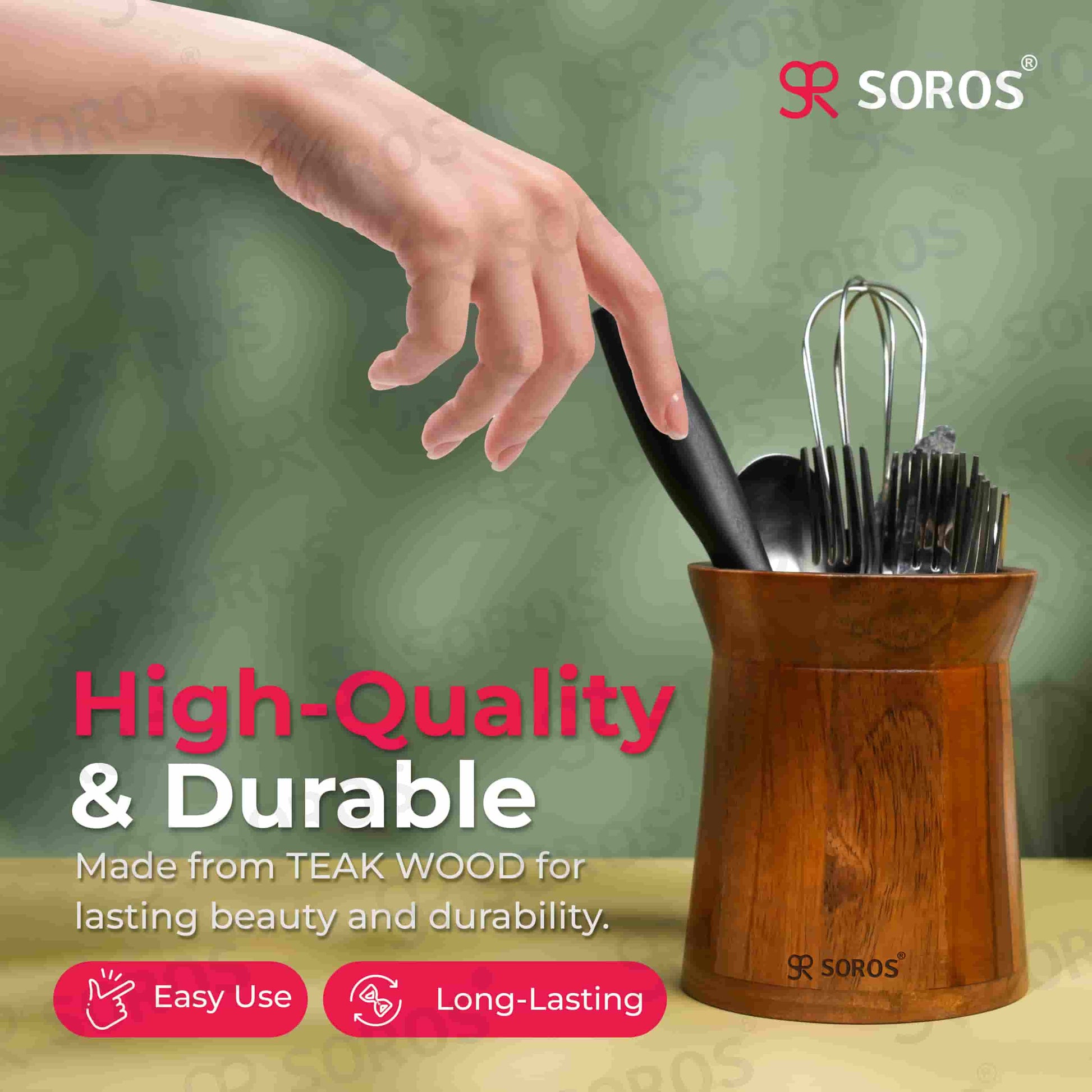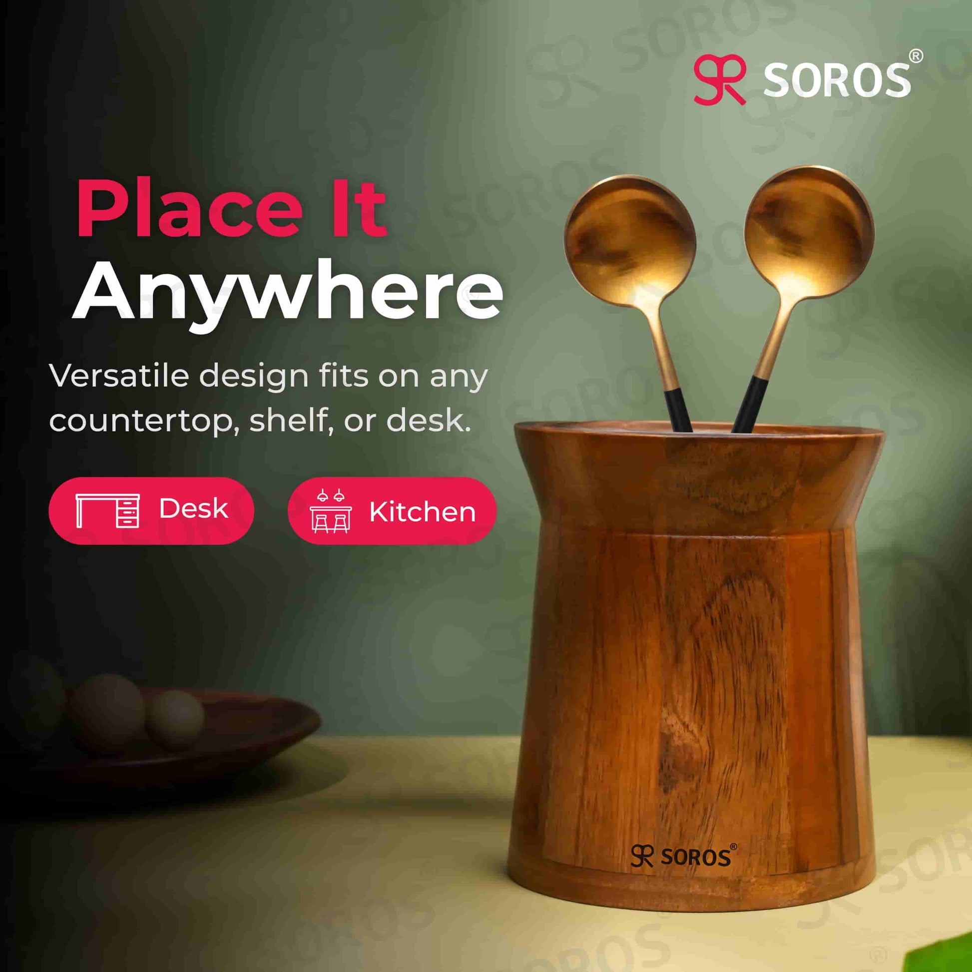 Introducing the Soros Spoon Stand: India's Best Kitchen Organizer & Storage Solution. Are you tired of kitchen clutter and disorganization? Look no further! Our Soros Spoon Stand is a versatile and space-saving storage solution designed to keep your kitchen utensils organized and within reach. Made from high-quality materials, this spoon stand is built to last and provide years of reliable service. The Soros Spoon Stand is perfect for storing ladles, spatulas, whisks, cutlery, and other kitchen essentials. Its multipurpose design also makes it an ideal bathroom caddy or desk organizer. Whether you need to declutter your kitchen, bathroom, or office, our spoon stand is the perfect solution. With its easy-to-clean design and durable construction, you can trust that it will remain a valuable addition to your home for years to come. By choosing the Soros Spoon Stand, you're not only getting a high-quality product, but also supporting Made-in-India innovation. Our product is designed with the Indian consumer in mind, offering an affordable and value-for-money solution for kitchen storage. With free shipping across India and a 100% satisfaction guarantee, you can buy with confidence.