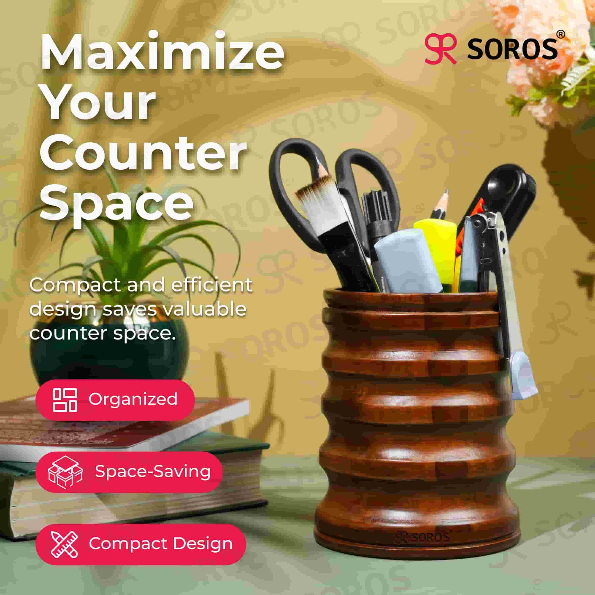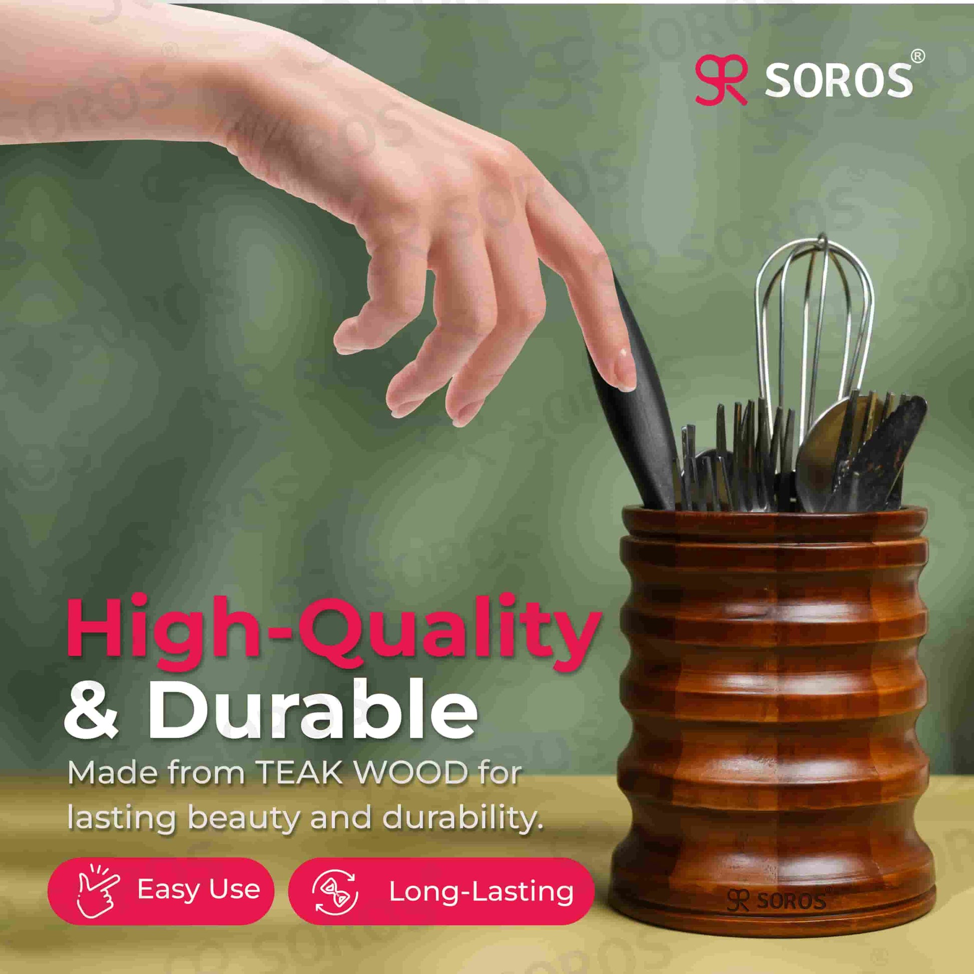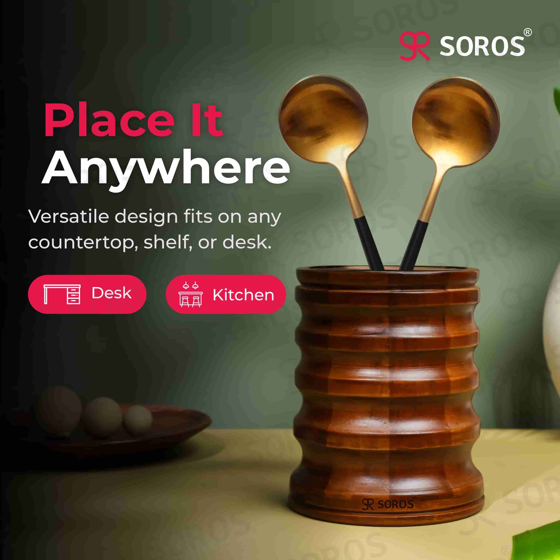 Introducing the Soros Spoon Stand: India's Best Kitchen Organizer & Storage Solution. Are you tired of kitchen clutter and disorganization? Look no further! Our Soros Spoon Stand is a versatile and space-saving storage solution designed to keep your kitchen utensils organized and within reach. Made from high-quality materials, this spoon stand is built to last and provide years of reliable service. The Soros Spoon Stand is perfect for storing ladles, spatulas, whisks, cutlery, and other kitchen essentials. Its multipurpose design also makes it an ideal bathroom caddy or desk organizer. Whether you need to declutter your kitchen, bathroom, or office, our spoon stand is the perfect solution. With its easy-to-clean design and durable construction, you can trust that it will remain a valuable addition to your home for years to come. By choosing the Soros Spoon Stand, you're not only getting a high-quality product, but also supporting Made-in-India innovation. Our product is designed with the Indian consumer in mind, offering an affordable and value-for-money solution for kitchen storage. With free shipping across India and a 100% satisfaction guarantee, you can buy with confidence.
